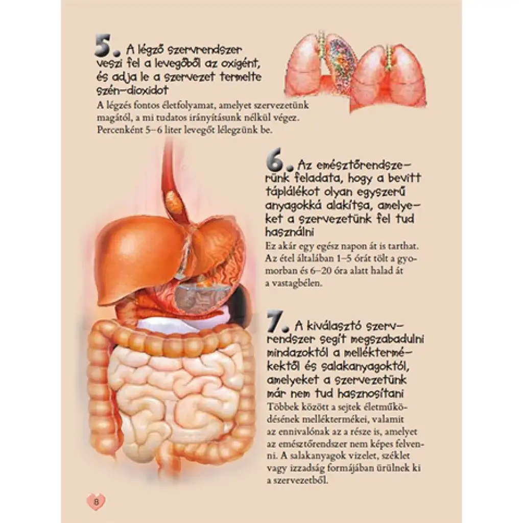 Z tej książki dzieci mogą nauczyć się wielu interesujących rzeczy, takich jak to, ile mięśni znajduje się w ludzkim ciele. Mogą poznać, jak działają nasze najważniejsze narządy, z czego składa się proces trawienia czy rozmnażania. Ale to tylko kilka przykładów, ponieważ dzięki licznym kolorowym ilustracjom można prześledzić nasze ciało od stóp do głów. Czterdziestoośmiostronicowa książka została opracowana głównie dla dzieci w wieku około dziewięciu lat.