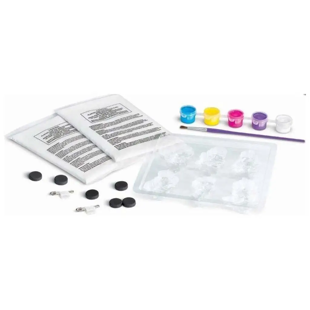 W zestawie znajduje się wszystko, czego potrzeba, aby dzieci mogły własnoręcznie wykonać i pomalować urocze figurki wróżek. Najpierw, za pomocą form odlewniczych, wykonują gipsowe figurki, a po wyschnięciu mogą je pomalować dołączonymi farbami. Błyszczące farby sprawią, że wróżki będą jeszcze bardziej magiczne! Gotowe figurki można wyposażyć w magnesy lub bazy do przypinek, dzięki czemu posłużą jako świetne prezenty lub unikalne dekoracje. Zestaw ten nie tylko rozwija zręczność manualną, ale także cierpliwość i poczucie kolorów. Ponadto, tworzenie może być wspólną zabawą – jako rodzic również możesz wziąć udział w procesie.