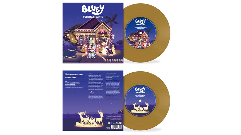 Naciśnij przycisk „igen” spośród przycisków Yes No, aby zdobyć ten album świąteczny Bluey! Bluey Verandah Santa ukaże się na CD oraz na serwisach streamingowych 7 listopada. Trzy utwory z albumu zadebiutują także na 7-calowym białym winylu, a także będzie dostępny ekskluzywny, 7-calowy złoty winyl Walmart. To wyjątkowe wydanie będzie idealnym prezentem dla każdego fana Bluey i wprowadzi prawdziwie świąteczną atmosferę do Twojego domu!Czekając na ten muzyczny prezent świąteczny, rodziny już teraz mogą posłuchać utworu „Verandah Santa” na wszystkich muzycznych serwisach streamingowych. Jeśli chcesz posłuchać tej wesołej, świątecznej piosenki i zapisać album z wyprzedzeniem, odwiedź oficjalną stronę! Opiekunowie znajdą tam także gry o tematyce muzycznej i jeszcze więcej muzyki Bluey oraz dodatkowe treści na stronie internetowej Bluey. Odkryjcie razem świąteczną atmosferę i cieszcie się wspólnymi muzycznymi przeżyciami!