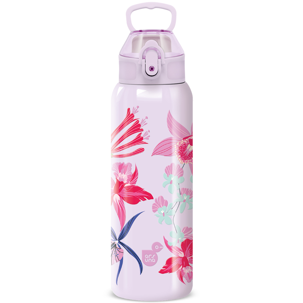 Opinie o Ars Una: 3D Beach Flowers liliowy podwójnie ściankowy metalowy bidon 700 ml: