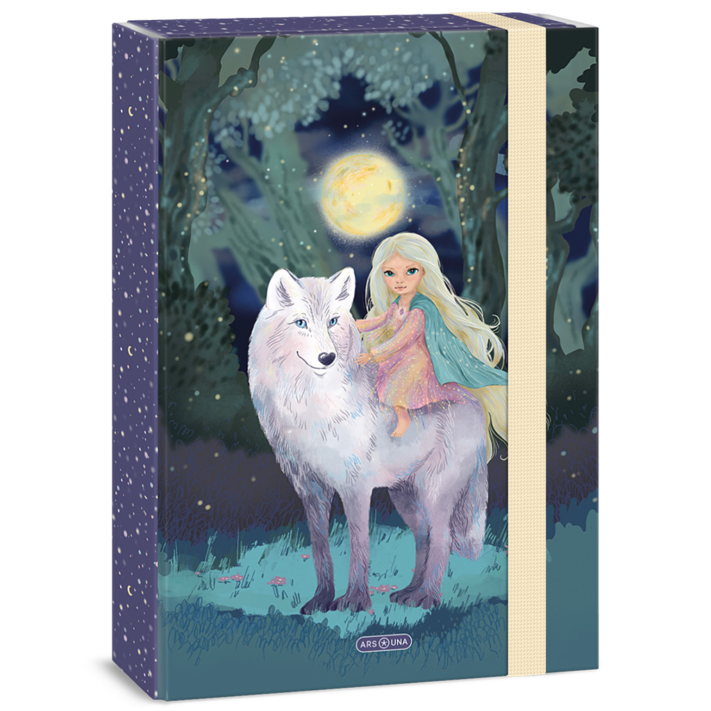 Pudełko na zeszyty w formacie A4 z wilczą, bajkową grafiką