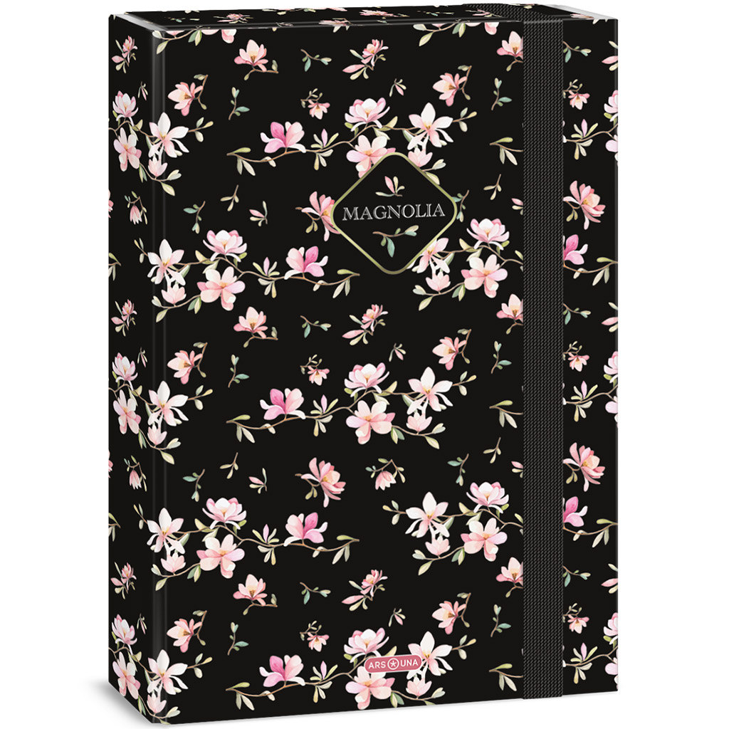 Ars Una: pudełko na zeszyty A4 z motywem magnolii to eleganckie i praktyczne rozwiązanie, dzięki któremu wyprawka szkolna twojego dziecka będzie zawsze uporządkowana i chroniona. Delikatne kwiaty magnolii na czarnym tle nadają mu naprawdę stylowy wygląd, dlatego to idealny wybór dla tych, którzy lubią stonowane, a jednocześnie wyjątkowe wzory. Duży rozmiar formatu A4 jest idealny do przechowywania zeszytów, rysunków i ważnych dokumentów, chroniąc je przed zgnieceniami. Wytrzymała, twarda okładka z kartonu jest niezawodna na dłuższą metę, a mocna gumka pewnie zamyka pudełko.