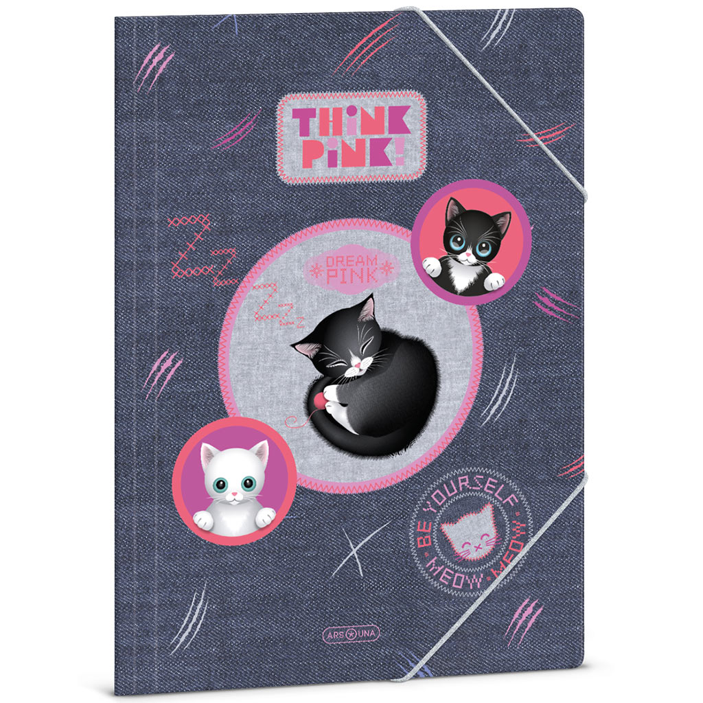 Ars Una: Think Pink — urocza teczka z kotkami i gumką, format A4Ars Una: Think Pink — urocza teczka z kotkami i gumką, format A4