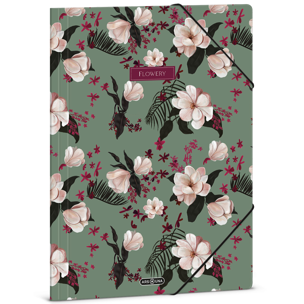 Ars Una: zielona teczka z gumką w kwiaty, format A4Ars Una: zielona teczka z gumką w kwiaty, format A4