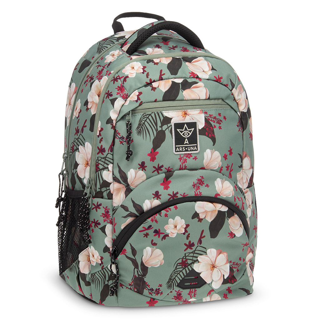 Ars Una: zielony w kwiaty ergonomiczny plecak szkolny 27 LArs Una: zielony w kwiaty ergonomiczny plecak szkolny 27 L