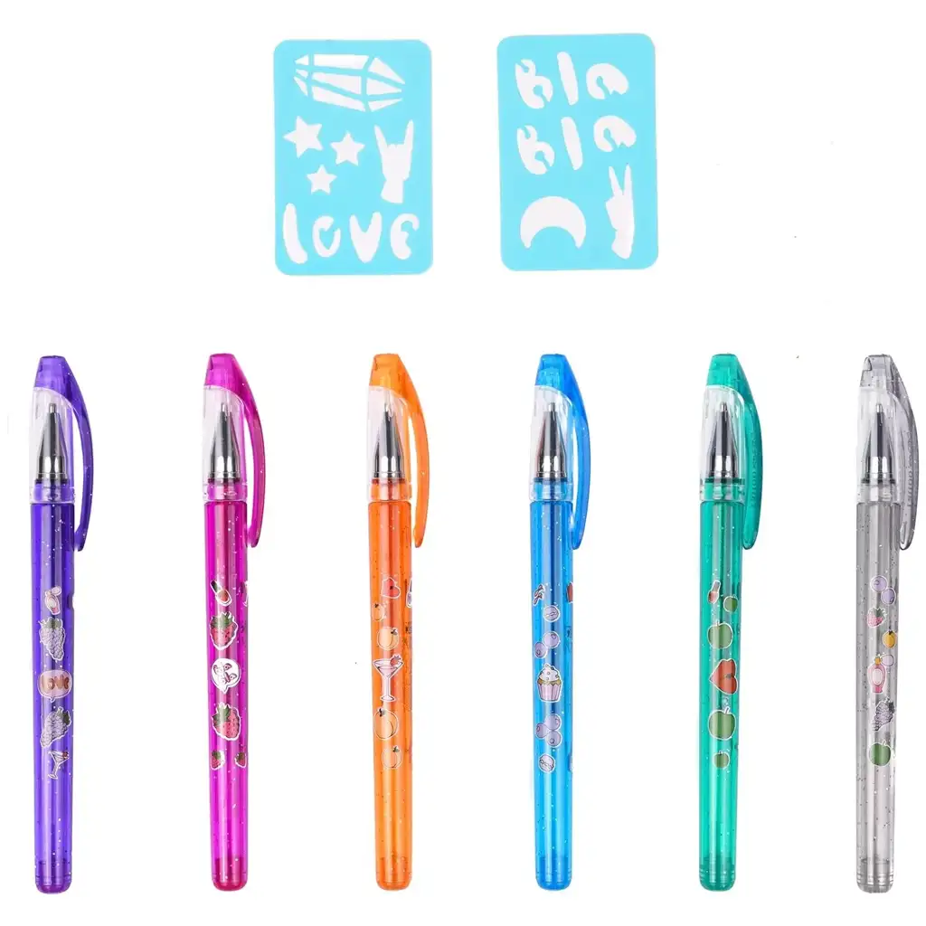 Mazaki występują w różnych kolorach – fioletowym, różowym, pomarańczowym, niebieskim, zielonym i srebrnym – dzięki czemu dzieci mogą dowolnie je łączyć, tworząc własne, niepowtarzalne „tatuaże”. Używanie ich jest bardzo proste: wystarczy położyć szablon na skórze, odrysować wzór wybranym mazakiem i kolorowy tatuaż gotowy! Brokatowy tusz szybko schnie, a delikatne zapachy sprawiają, że zabawa daje jeszcze więcej radości.