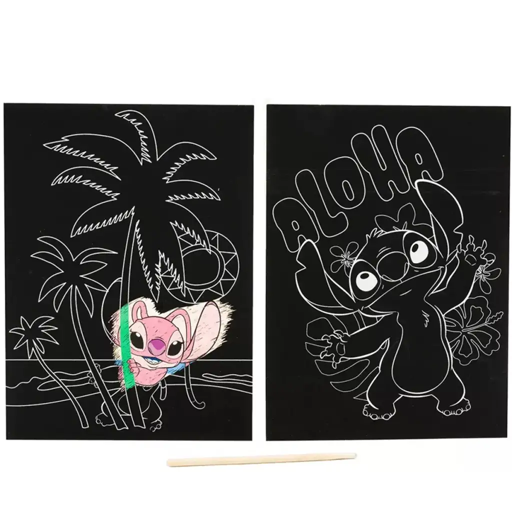 Zaskocz swoje dziecko kreatywnym, a jednocześnie relaksującym zajęciem! Zestaw plakatów do zdrapywania ze Stitchem zachwyci nie tylko fanów Disneya, ale także dzieci, które lubią rysować, tworzyć i własnoręcznie wykonywać piękne obrazki. W zestawie znajdują się dwa różne, wstępnie naszkicowane obrazki – popularny Stitch i jeden z jego przyjaciół w tropikalnej scenerii, z napisem "Aloha" i palmami w tle.