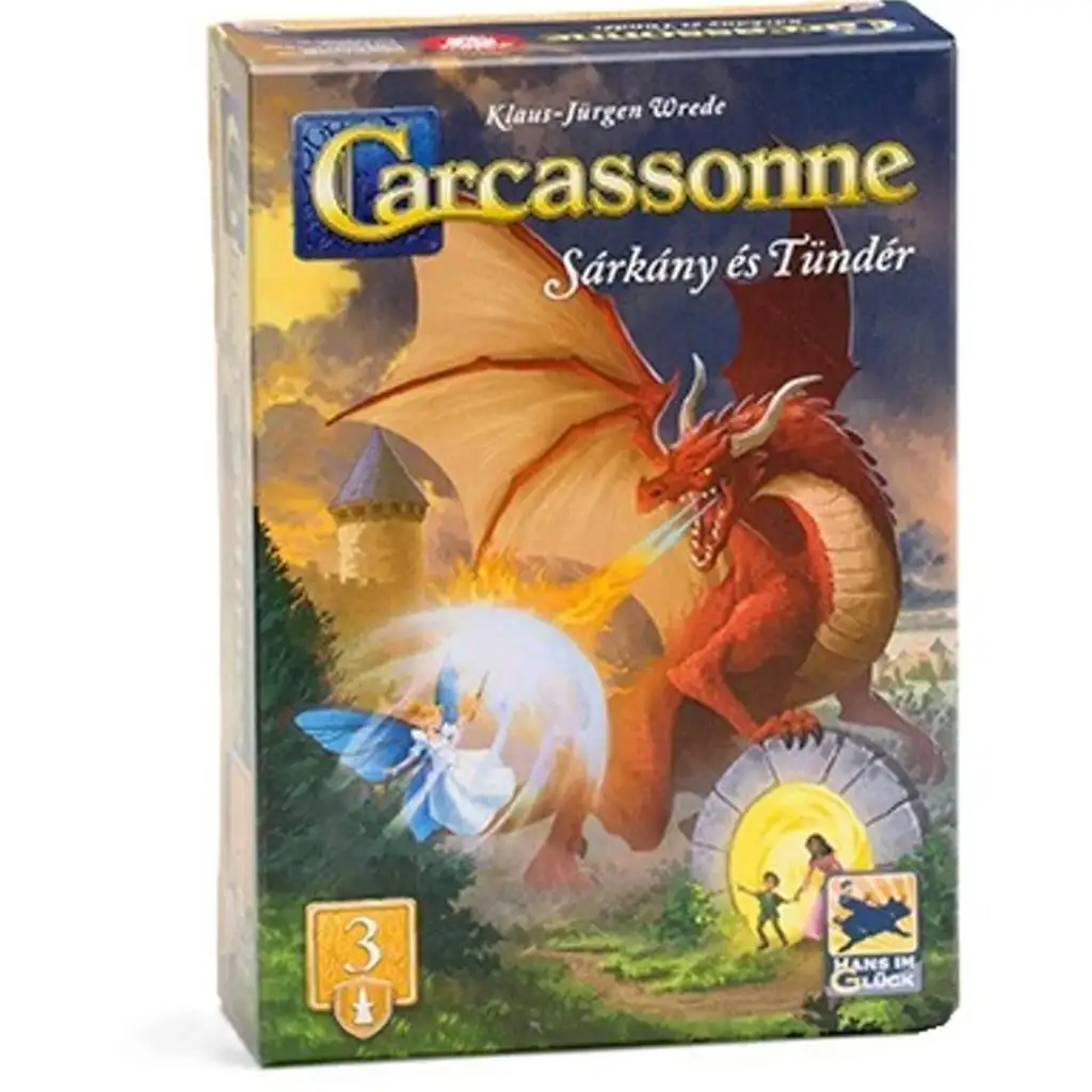 Carcassonne: Smoki i Wróżka – ekscytujące, baśniowe rozszerzenie do klasycznej gry Carcassonne, w którym groźny smok i ochronna wróżka wywracają do góry nogami dotychczasowe strategie. Wraz z nowymi kafelkami na planszy pojawiają się wulkany, magiczne bramy i specjalne pola, a smok, przemierzając okolice, „odstrasza” rycerzy, rabusiów i mnichów z punktowanych miejsc. W tym czasie wróżka może stanąć przy boku graczy, zapewniając dodatkowe punkty i ochronę, dlatego trzeba rozsądnie się rozbudowywać i uważać na nieoczekiwane zwroty akcji.