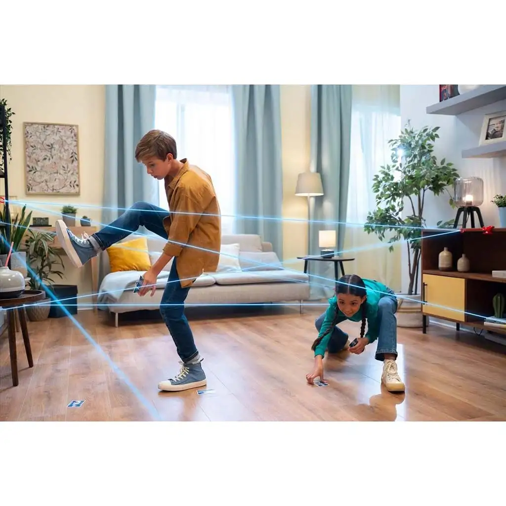Przygotowanie pola gry jest łatwe i elastyczne – sznurki można dowolnie przymocować do różnych mebli lub powierzchni, więc każda rozgrywka to nowy tor. Licznik czasu i czujniki ruchu zapewniają emocje: jeśli ktoś dotknie „lasera”, bomba zaczyna tykać szybciej! Celem gry jest dotrzeć do panelu kontrolnego i zatrzymać odliczanie na czas. Możesz spróbować swoich sił samodzielnie lub grać z innymi, zamieniając misję w prawdziwą współpracę zespołową.