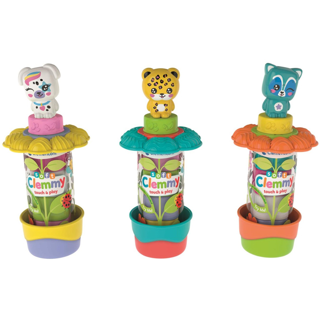 Clemmy: Miękkie kolorowe klocki z figurką w kwiatowym pojemniku, 1 szt. - ClementoniClemmy: Miękkie kolorowe klocki z figurką w kwiatowym pojemniku, 1 szt. - Clementoni