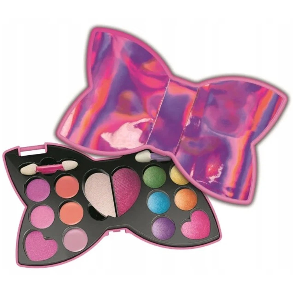 Zestaw do makijażu Crazy Chic Ribbon Ready to idealny wybór, jeśli Twoje dziecko chce odkrywać świat makijażu w zabawny i bezpieczny sposób. Wyjątkowe, w kształcie kokardki opakowanie samo w sobie zachwyca, a błyszcząca powierzchnia tworzy prawdziwie księżniczkowy nastrój. W zestawie znajdują się cienie do powiek w różnych kolorach, róż do policzków oraz błyszczyk, dzięki czemu Twoje dziecko może swobodnie rozwijać swoją kreatywność. Dzięki praktycznemu wykonaniu zestaw łatwo się otwiera i jest przenośny, więc może zabrać go ze sobą wszędzie.