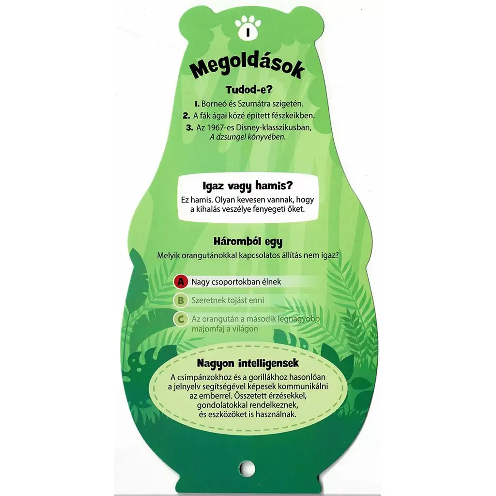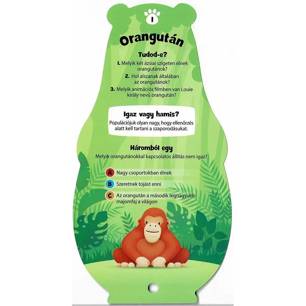 Na kartach czekają na dzieci kolorowe pytania i zadania: pytania błyskawiczne, prawda/fałsz oraz quizy z trzema odpowiedziami pomagają uczyć się w formie zabawy nazw zwierząt, ich siedlisk, zwyczajów i niezwykłych cech. Czy wiedzą, które zwierzę żyje na której wyspie? Czy potrafią odróżnić fakty od mitów? Lub rozpoznać, które stwierdzenie nie dotyczy danego zwierzęcia?