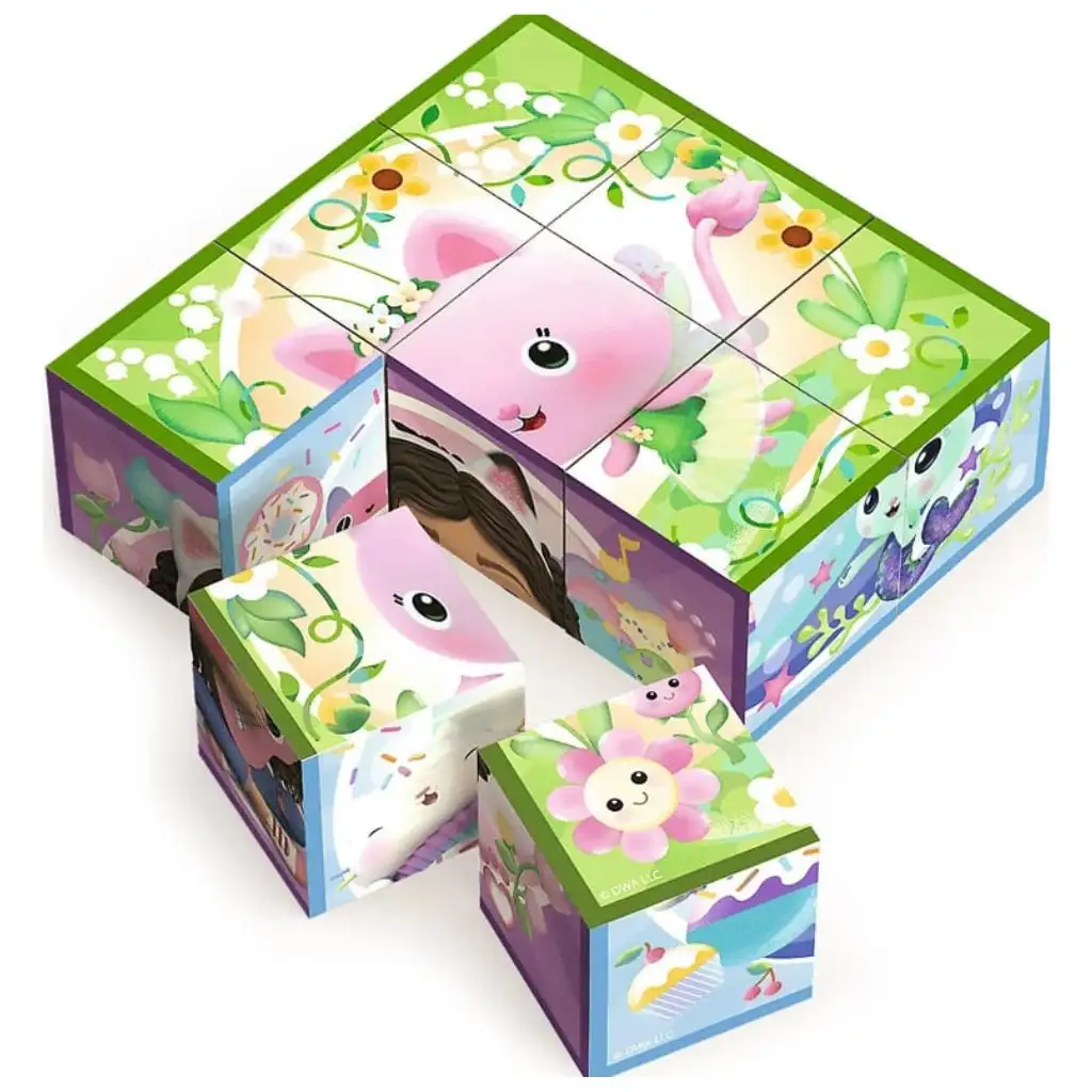 Wielkość klocków jest idealna dla małych rączek, a trwałe drewno zapewnia zabawę na długie lata. Piękne, żywe grafiki zaczerpnięte są z popularnej serii Gabby’s Dollhouse, dzięki czemu każdy ułożony obrazek sprawia nową radość.