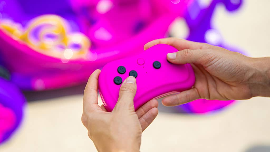 24-woltowa karoca Księżniczek Disney od Dynacraft to różowo-fioletowy, błyszczący samochodzik w kształcie karocy, który dzięki filigranowym zdobieniom, dekoracyjnym lampionom oraz zdejmowanej przedniej koronie staje się naprawdę magiczny – idealny do zabawy w odgrywanie ról i spełniania marzeń o byciu księżniczką.
