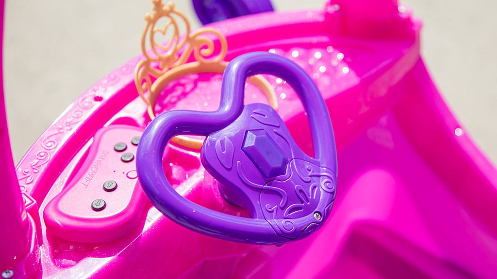 Jazda jest zaskakująco płynna, co jest zasługą pasków antypoślizgowych wykonanych z gumy oraz solidnej, stabilnej konstrukcji. Panel dźwiękowy aktywowany przez naciśnięcie kryształu pośrodku kierownicy zapewnia dodatkowe, magiczne wrażenia. Ta wyjątkowa funkcja sprawia, że zabawa staje się jeszcze bardziej ekscytująca, ponieważ dzieci mogą słuchać swoich ulubionych dźwięków podczas jazdy.
