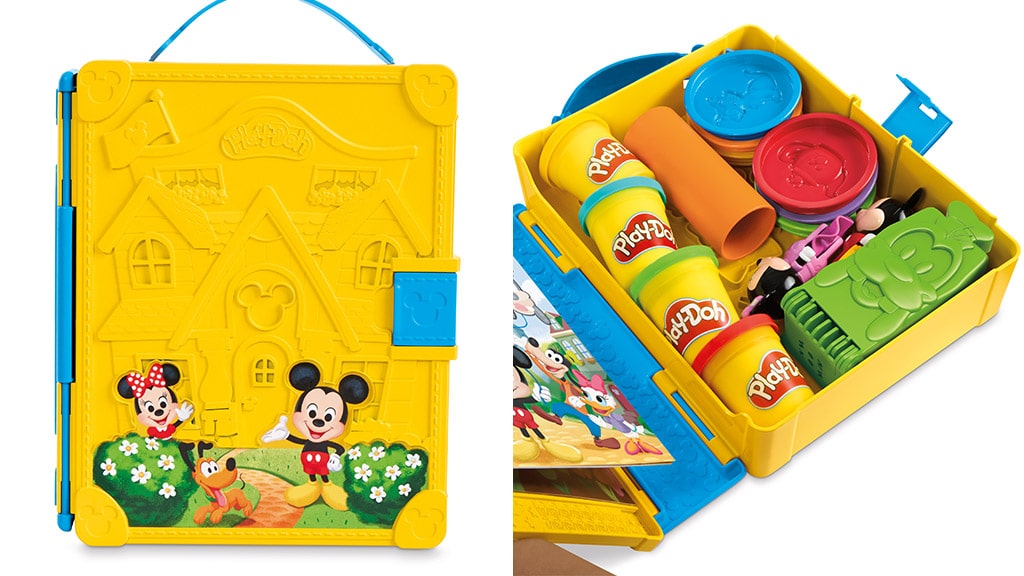 Ten wszechstronny zestaw zawiera sześć pieczątek z ulubionymi przez dzieci postaciami Disneya: Minnie Mysz, Kaczor Donald, Goofy, Kaczka Daisy, Pluto i Myszka Miki. Dzieci mogą odkrywać i wyrażać swoje emocje za pomocą sześciennej pieczątki, bawiąc się kreatywnie. Po zakończonej zabawie zestaw można łatwo złożyć jeden na drugi, dzięki czemu można uniknąć bałaganu, a sprzątanie jest proste!Zabierz ze sobą zabawę z Play-Doh wszędzie dzięki tym zestawom! Dzieci mogą wybrać między Myszką Miki a Myszką Minnie, otworzyć pudełko i puścić wodze wyobraźni. Każdy zestaw zawiera foremki, stemple, figurki i wiele innych ekscytujących akcesoriów w praktycznym, przenośnym pudełku. Dzięki tym zestawom dzieci mogą bawić się kreatywnie zawsze i wszędzie, rozwijając swoje zdolności motoryczne i kreatywność.