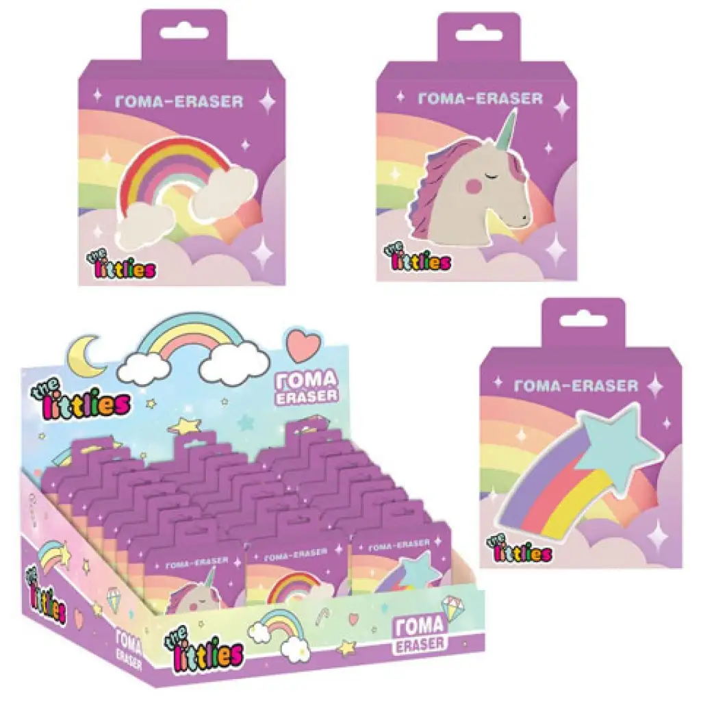 Możesz uzupełnić piórnik swojej małej córeczki na początek roku szkolnego super słodką gumką do mazania, spośród których możesz wybrać tę, która najbardziej do niej pasuje. Gumki mają dziewczęcy wygląd: jedna przedstawia tęczę, druga jednorożca, a trzecia spadającą gwiazdę z tęczowym motywem. Wszystkie trzy wyglądają świetnie, są bardzo dziewczęce i z łatwością zmieszczą się w piórniku. Wybierz jedną lub zbierz je wszystkie dla swojego dziecka i niech rok szkolny się zacznie.