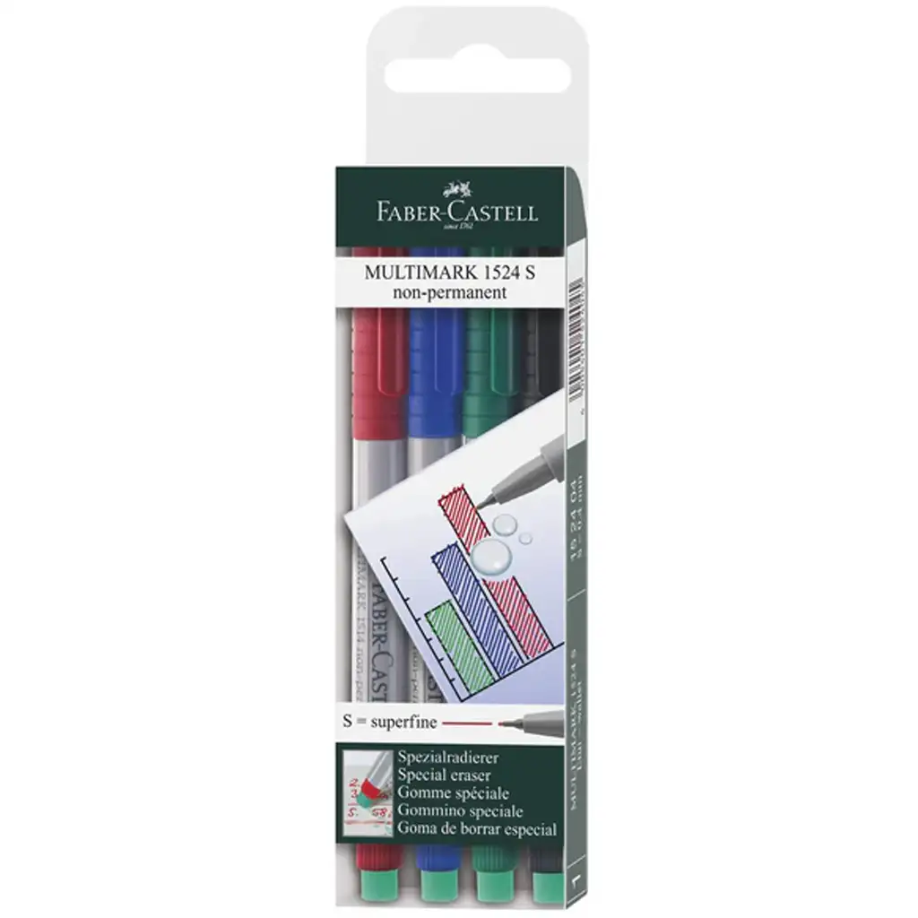 Zestaw markerów Faber-Castell Multimark do folii z końcówką o grubości S (supercienka) to doskonały wybór, gdy potrzebne są wyjątkowo cienkie i precyzyjne linie na foliach, szkle, metalach czy innych gładkich powierzchniach. Zestaw czterech markerów zawiera kolory: czerwony, niebieski, zielony i czarny, dzięki czemu jest wszechstronny – idealny do szkoły, biura lub kreatywnych zastosowań. Na bazie wody, niepermanentny atrament można łatwo usunąć wilgotną ściereczką, dlatego świetnie sprawdza się do tymczasowych notatek lub do użycia na powierzchniach wielokrotnego użytku.