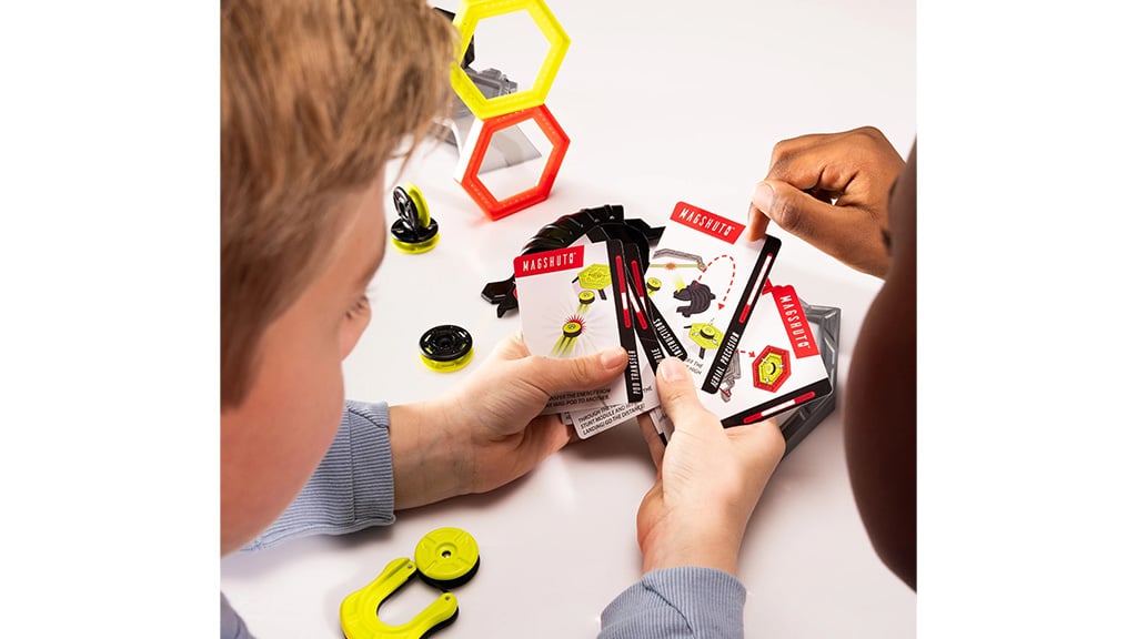 Ten zestaw do zabawy pomaga dzieciom rozwijać zdolności motoryki małej oraz koordynację ręka-oko, podczas gdy wystrzeliwują magnetyczne elementy i budują tory przeszkód. Podczas zabawy dzieci w naturalny sposób przyswajają zasady STEM (nauka, technologia, inżynieria i matematyka), na przykład pojęcia bezwładności i grawitacji, obserwując, jak daleko polecą magnetyczne elementy w zależności od tego, jak mocno naciągną procę.