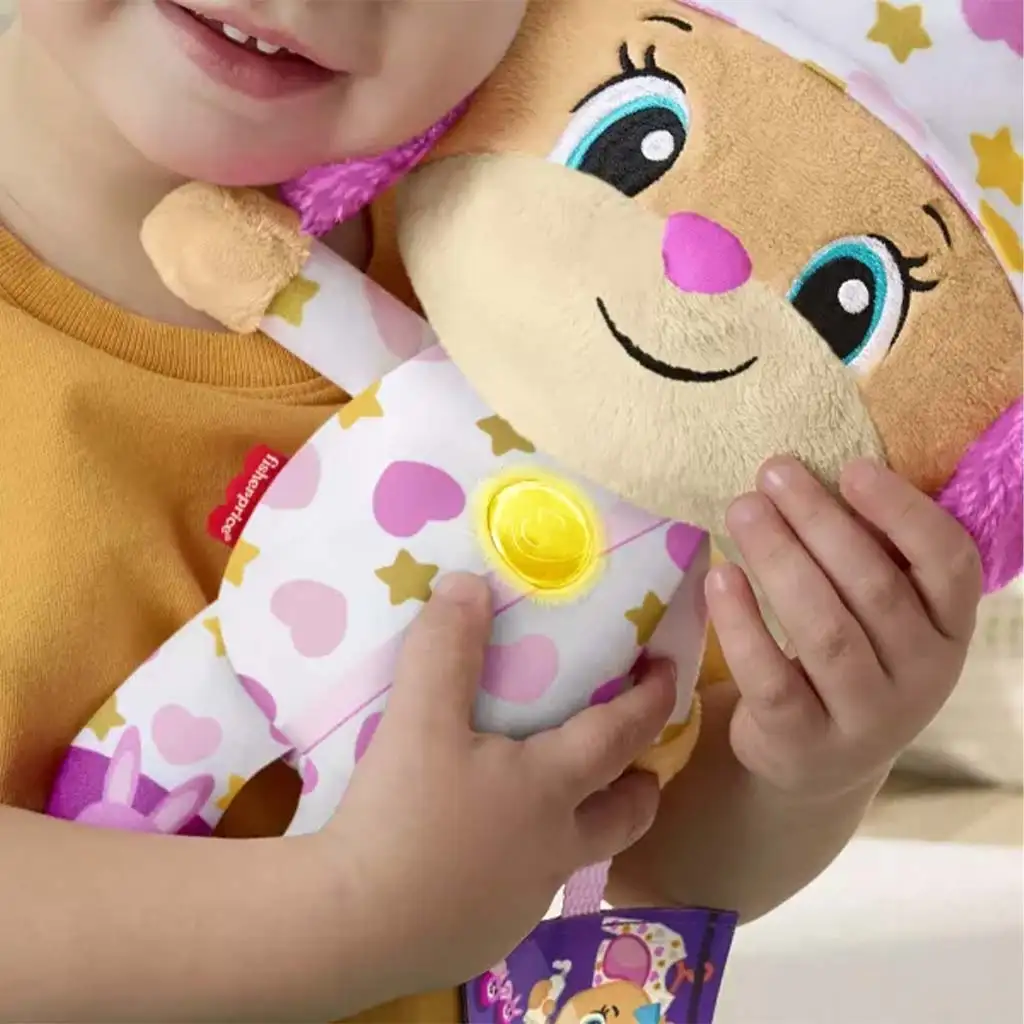 Fisher-Price: Słodkich snów Piesek Siostrzyczka to uroczy, miękki pluszowy przyjaciel do usypiania, który został stworzony specjalnie, aby uspokajać najmłodszych i pomagać im zasnąć. Ten słodki piesek nie tylko zachęca do przytulania, ale dzięki delikatnym światełkom i kojącym melodiom wspiera wieczorną rutynę dziecka, sprawiając, że zasypianie staje się bezpiecznym i przyjemnym doświadczeniem.