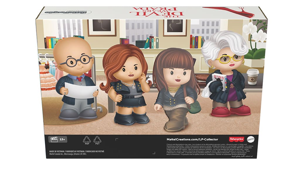 Kolekcjonerski zestaw Little People Collector „Diabeł ubiera się u Prady” oddaje hołd przełomowemu filmowi z 2006 roku, prezentując się w designerskiej odsłonie, która z pewnością nie wygląda zwyczajnie. Ten wyjątkowy, limitowany zestaw kolekcjonerski zawiera cztery dobrze znane ikony mody z filmu, każdą w charakterystycznym stylu Little People, w olśniewających strojach.
