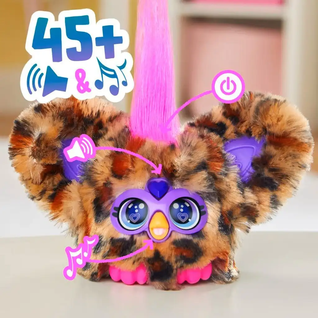 Jeśli szukasz naprawdę odjazdowego i stylowego małego przyjaciela dla swojego dziecka, Chee-Chee będzie idealnym wyborem! To jeden z najbardziej wyjątkowych przedstawicieli serii Furby Furblets – Chee-Chee wyróżnia się nie tylko futerkiem w cętki dzikiego kota, ale także swoją figlarną osobowością. Ta mini interaktywna pluszowa figurka potrafi wydawać ponad 45 dźwięków i reakcji, które z pewnością wywołają uśmiech na twarzach dzieci.