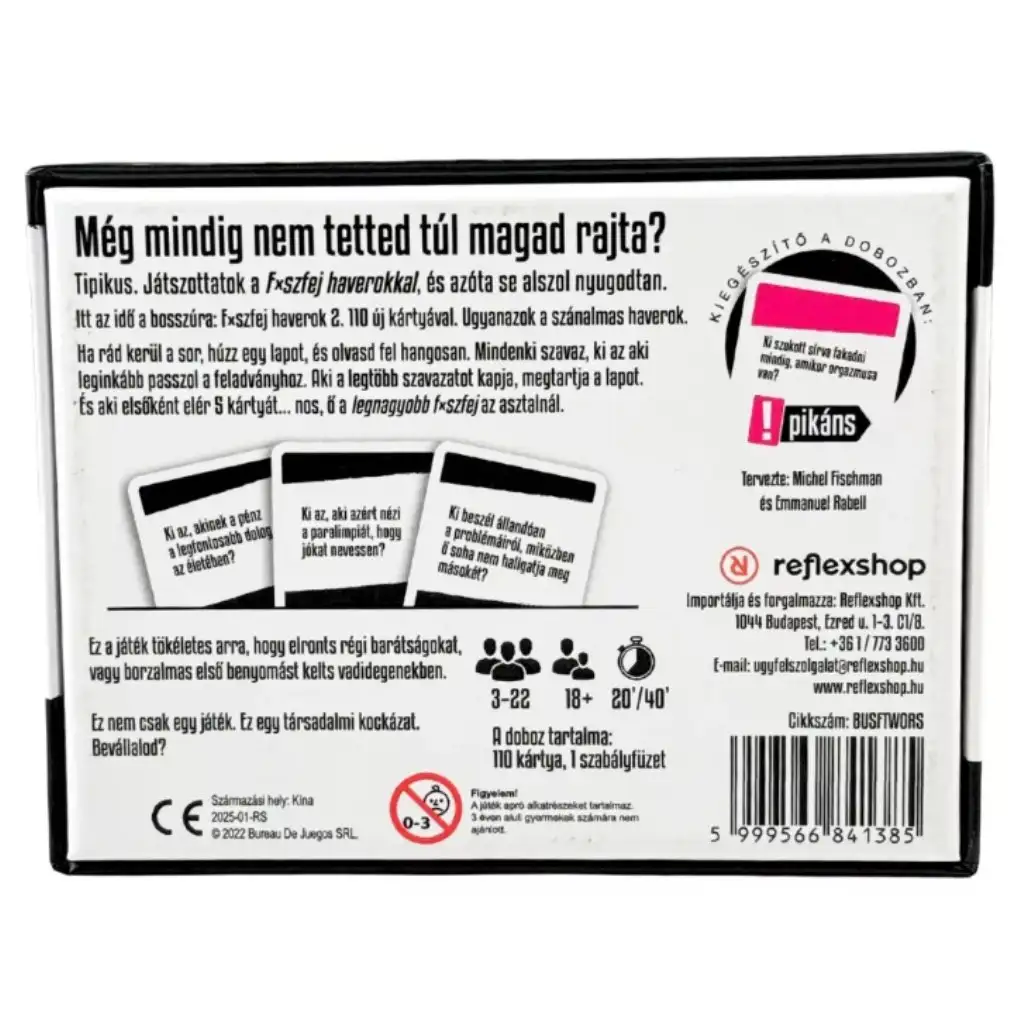 Fxszfej Haverzy 2 – brutalnie szczera, doprowadzająca do łez ze śmiechu gra imprezowa powraca z nową dawką wyzwań, w której znowu to wasza paczka znajomych trafia na celownik. Ciągniesz kartę, czytasz pytanie, a potem wszyscy bez zastanowienia wskazują osobę, do której „najbardziej pasuje” dana sytuacja. Nie ma tu owijania w bawełnę – tylko niezręczne prawdy, gorące spory i taki rodzaj śmiechu, że aż boli brzuch.