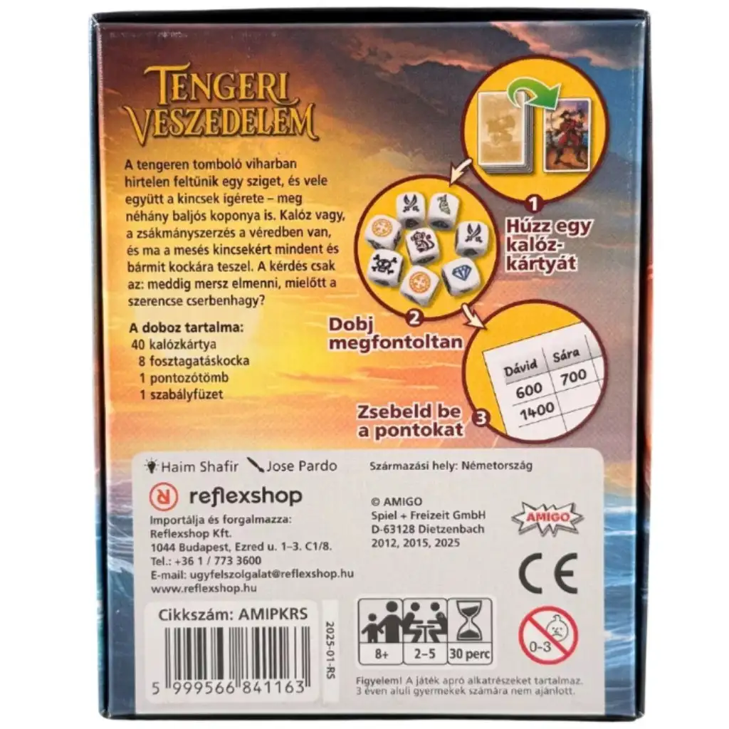 Pośród szalejącej na morzu burzy nagle pojawia się tajemnicza wyspa – oprócz obietnicy bajecznych skarbów, czyhają tam jednak na ciebie złowrogie czaszki. "Morski Niebezpieczeństwo" to szybka i ekscytująca gra kościana, w której jako śmiały pirat musisz zdecydować: jak daleko odważysz się posunąć po łup, zanim szczęście całkiem cię opuści? Podczas rozgrywki ciągniesz karty piratów, rzucasz kośćmi i po każdym rzucie rozważasz: zgarnąć punkty czy ryzykować dalej w nadziei na większą wygraną?