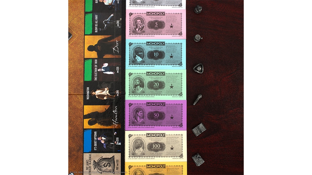 Monety i banknoty dołączone do gry przedstawiają takie postacie jak Angelica Schuyler, Hercules Mulligan, Marquis de Lafayette oraz Alexander Hamilton. To wyjątkowe wydanie oferuje ekscytujące przeżycie nie tylko fanom musicalu, ale także miłośnikom gier planszowych, łącząc klasyczną rozgrywkę z unikalnym, historycznym klimatem.