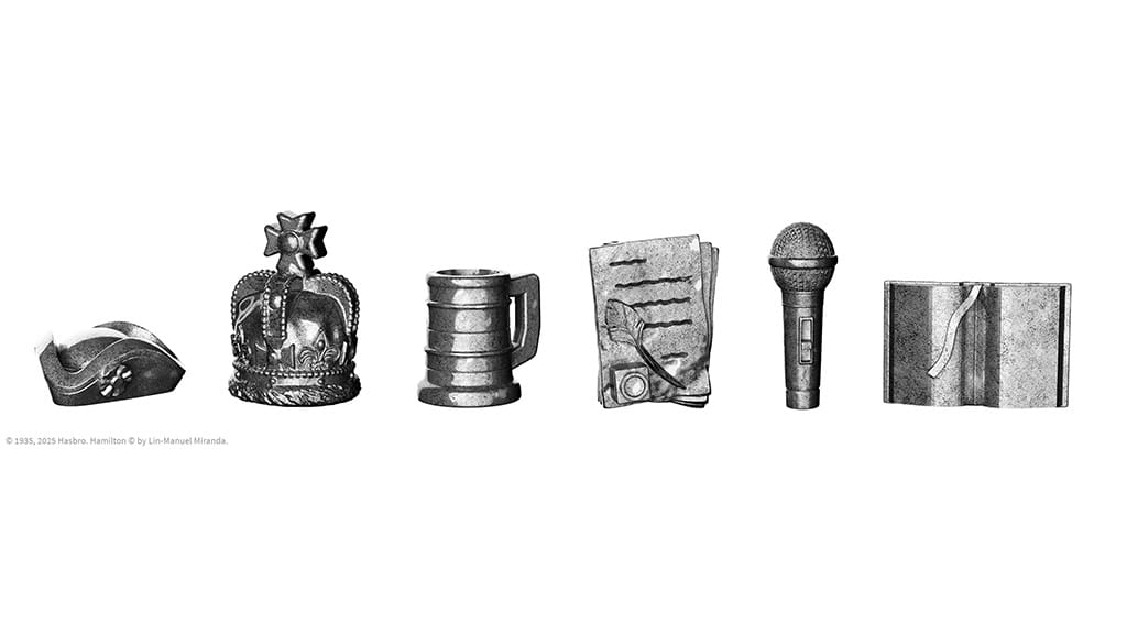 Ta wyjątkowa edycja Monopoly została stworzona z okazji 10. rocznicy musicalu, w której można usłyszeć takie kultowe utwory jak „My Shot”, „The Schuyler Sisters” oraz „You’ll Be Back”.
