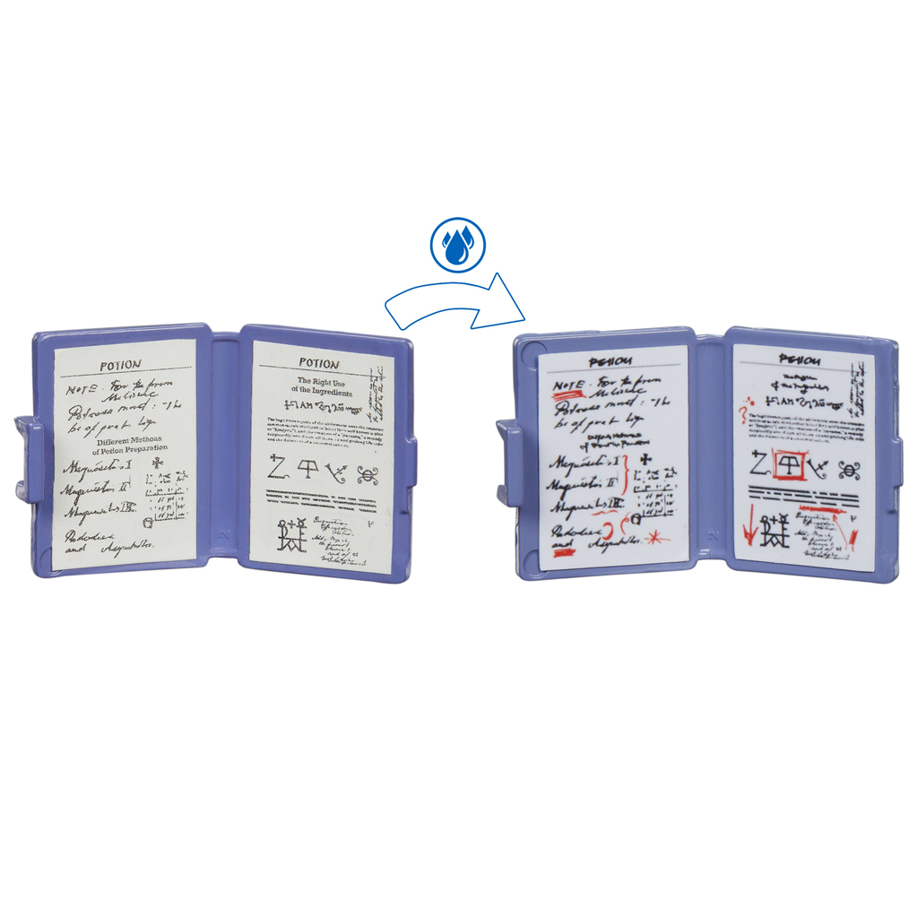 Zestaw zawiera 8 dodatków inspirowanych filmami, w tym pióra, pergamin, planszę do szachów, książkę oraz figurkę Scabbersa. Jedną z najbardziej ekscytujących niespodzianek jest notatka ujawniająca się pod wpływem wody, która przywodzi na myśl tajemnicze wiadomości Księcia Półkrwi — wystarczy odrobina „magii”, aby ukryte linie stały się widoczne! Szczegółowo wykonana półka idealnie porządkuje dodatki i doskonale pasuje do pozostałych zestawów z Ulicy Pokątnej.