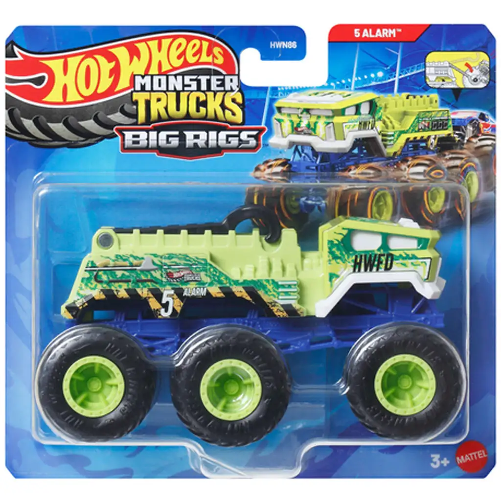 Hot Wheels Monster Trucks: Big Rigs sześciokołowy holownik 5 Alarm 1/64 – MattelHot Wheels Monster Trucks: Big Rigs sześciokołowy holownik 5 Alarm 1/64 – Mattel