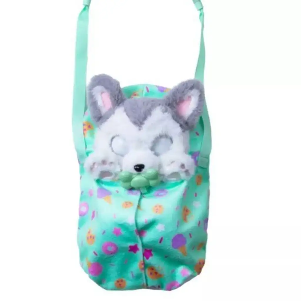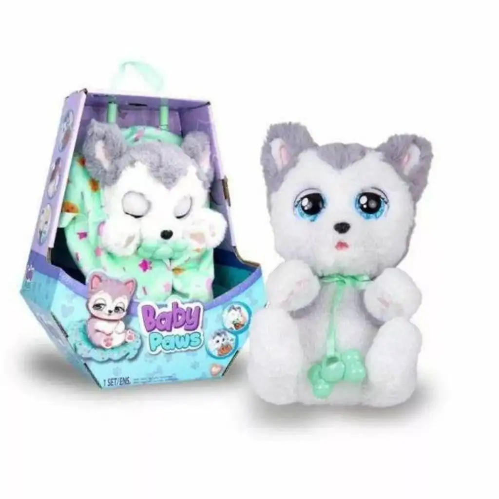 Interaktywny piesek Bébi Mancs – Husky to urocza, miękka pluszowa zabawka, która skradnie serce każdego małego miłośnika zwierząt. Ten słodki husky ma miękką, przyjemną w dotyku sierść oraz czarujące oczka, dzięki czemu jest idealnym przyjacielem do przytulania. Piesek posiada także funkcje interaktywne: gdy jest zmęczony, zamyka oczy i wydaje urocze dźwięki. Kiedy jest smutny, można go łatwo uspokoić za pomocą smoczka w kształcie kostki, zawieszonego na szyi. Do zabawki dołączony jest również nosidełko na ramię, dzięki czemu dzieci mogą zabrać swojego pieska wszędzie ze sobą i wspólnie odkrywać świat.