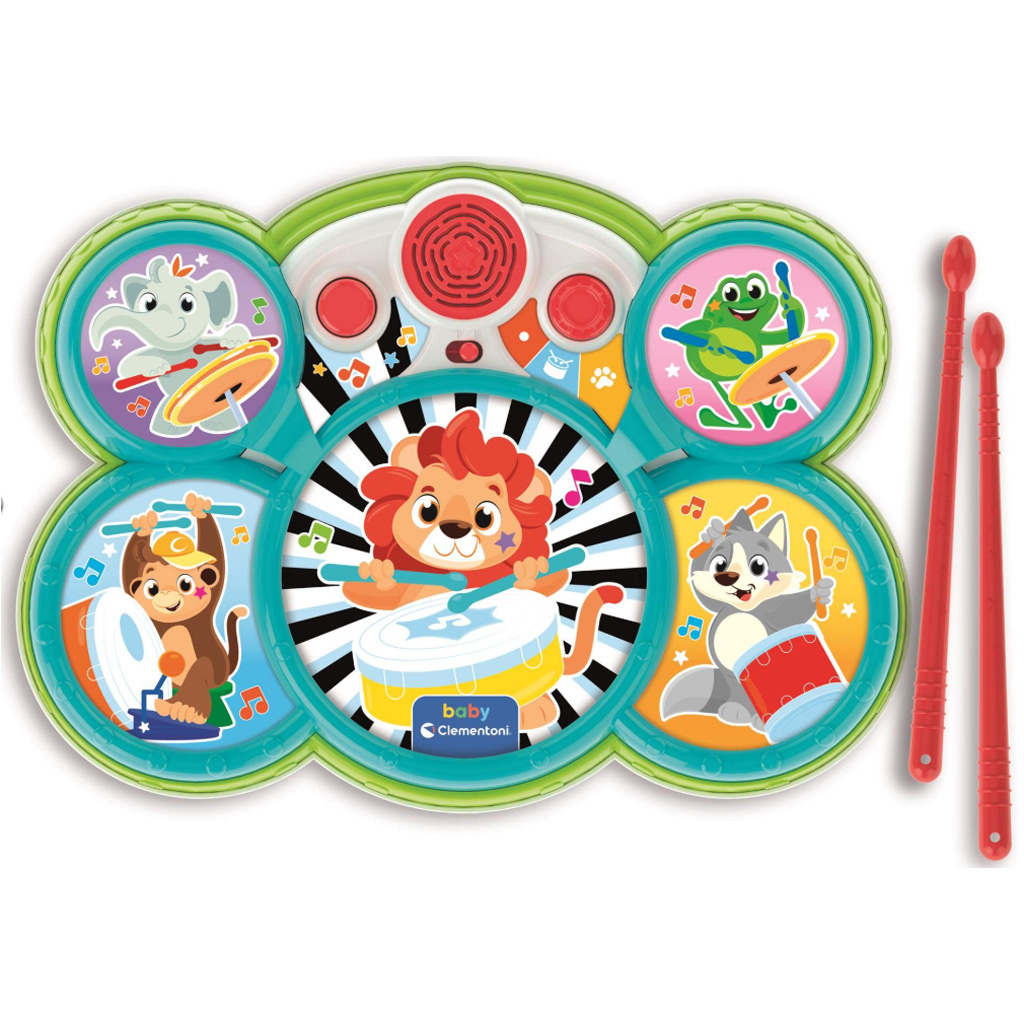 Zestaw bębnów z motywem zwierząt Clementoni Baby to doskonały wybór, jeśli chcesz wprowadzić swoje dziecko w świat muzyki w zabawny sposób. Wesołe, kolorowe powierzchnie bębnów i urocze figurki zwierząt natychmiast przyciągają uwagę maluchów, a różne dźwięki i melodie rozwijają słuch i poczucie rytmu. Załączonymi pałeczkami Twoje dziecko może aktywnie odkrywać radość muzykowania, jednocześnie rozwijając sprawność manualną i koordynację. Różne tryby zabawy zajmują malucha na długi czas, dzięki czemu zestaw zapewnia rozrywkę i wspomaga naukę już od 18. miesiąca życia.