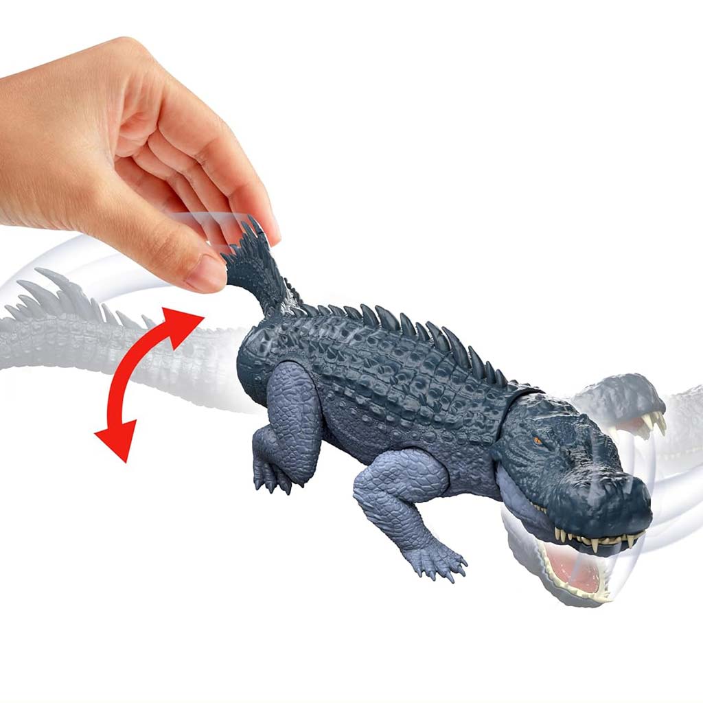 Figurka zachwyca bogactwem detali: łuskowata skóra, potężna szczęka, długi ogon oraz naturalna kolorystyka przyczyniają się do realistycznego wyglądu. Dzięki funkcji gigantycznego ataku dzieci mogą uruchamiać widowiskowe ruchy: poruszając ogonem lub ciałem, Purussaurus wykonuje atakujący gest, wydając przy tym realistyczne, groźne dźwięki. To połączenie zapewnia intensywne, filmowe doświadczenie podczas zabawy.