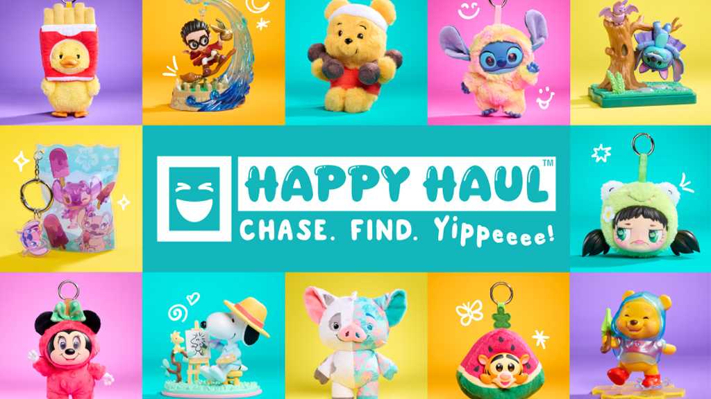 Happy Haul łączy ulubione elementy popkultury z najnowszymi trendami w designie. Każda odsłona kolekcji zawiera pluszaki, breloki, figurki i wiele innych. Te kolekcjonerskie przedmioty oferują niespodziankę, radość i niezapomniane, szczęśliwe chwile. Just Play przez cały rok wprowadza na rynek kolekcjonerskie produkty Happy Haul w limitowanych, ekskluzywnych edycjach. Seria ma na celu zachęcić wszystkich do udziału w polowaniu, odnalezienia swoich ulubieńców i przeżycia tego niezapomnianego uczucia „hurra!”, gdy uda się zdobyć coś naprawdę wyjątkowego. Happy Haul nie tylko daje radość z kolekcjonowania, ale także stwarza możliwość, by fani dzielili się ze sobą ekscytacją odkrywania i wspólnie cieszyli się najnowszymi trendami popkultury.