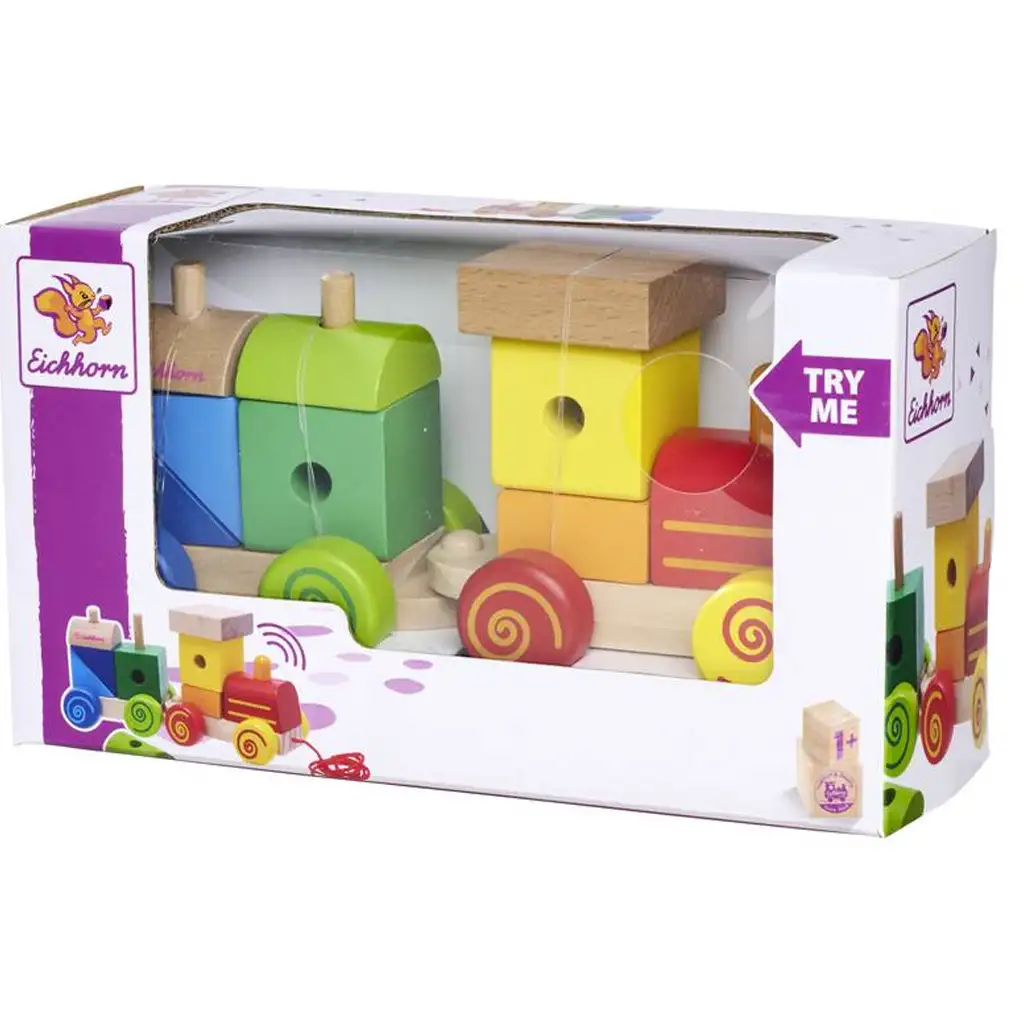 Kolorowy drewniany pociąg do ciągnięcia z klockami - EichhornKolorowy drewniany pociąg do ciągnięcia z klockami - Eichhorn