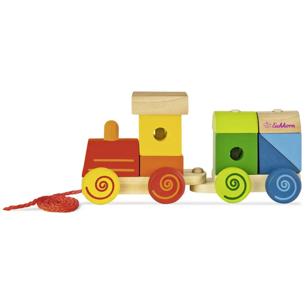 Kolorowy drewniany pociąg do ciągnięcia z klockami - Eichhorn
