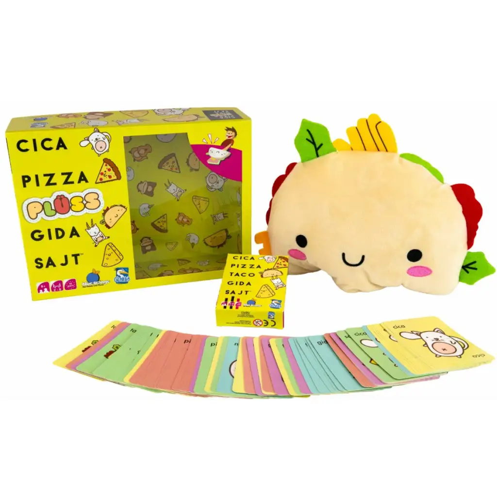 Cica Pizza Plüss Gida Sajt to nowa, pluszowa wersja popularnej gry imprezowej na refleks, która dodaje oryginalnej rozgrywce jeszcze więcej zabawy i śmiechu. Zasady są proste i dobrze znane: gracze kolejno odkrywają karty i skandują słowa „kot, pizza, koza, ser” – gdy wypowiedziane słowo zgadza się z obrazkiem na karcie, trzeba natychmiast uderzyć! Ale tu pojawia się twist: ten, kto nosi słodkiego pluszowego taco, może uderzać tylko tą ręką, na której ma maskotkę!