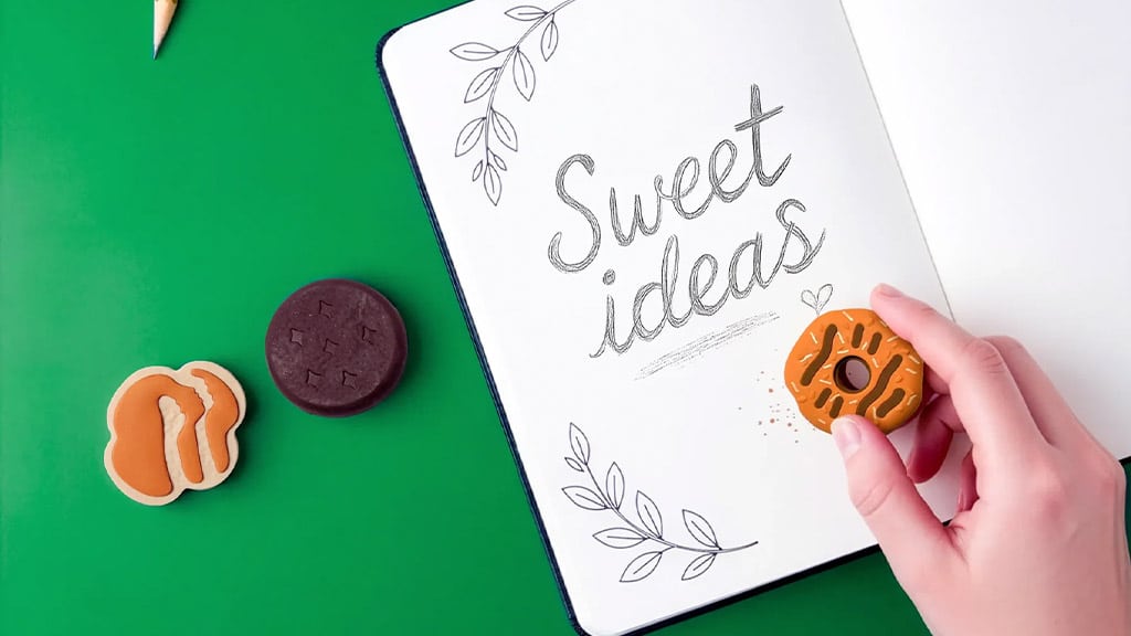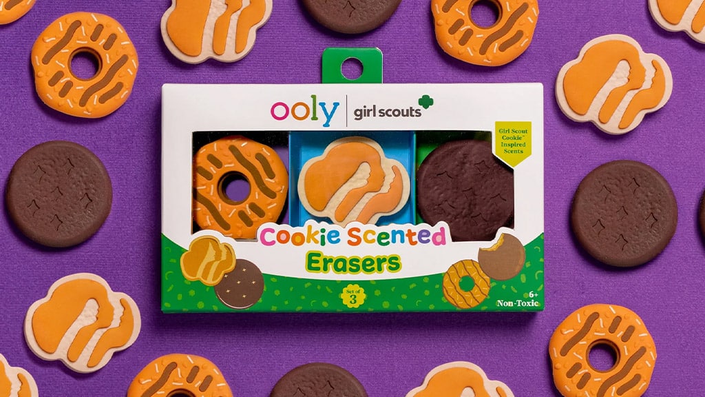 Aby nauka była jeszcze słodsza, wybierz gumkę Thin Mint, Coconut Caramel lub Trefoil! Te w kształcie ciasteczek, rozkładane na części puzzle-gumki w zabawny sposób pomagają poprawiać błędy, a sama poprawka staje się z nimi przyjemnością.