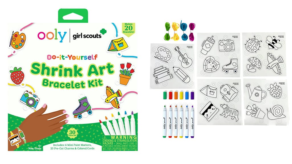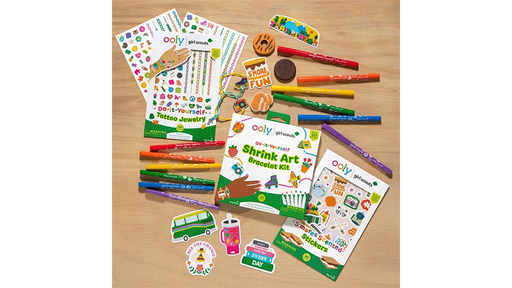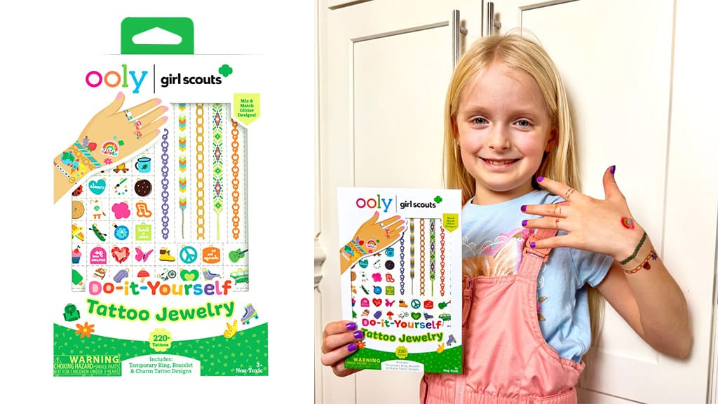 Dzieci mogą teraz naprawdę pokazać swój indywidualny styl dzięki dwóm wyjątkowym, własnoręcznie wykonanym zestawom akcesoriów. OOLY x Girl Scouts DIY zestaw do tworzenia bransoletek z folii termokurczliwej zawiera wszystko, czego dzieci potrzebują, aby zaprojektować i ozdobić unikalną biżuterię: pisaki, sznurki oraz 20 wstępnie wyciętych zawieszek z folii termokurczliwej. Jeśli przypadkiem zginie własnoręcznie wykonane dzieło, nie ma problemu — zestaw DIY tymczasowej biżuterii z tatuaży zawiera trzy arkusze błyszczących, naklejanych bransoletek, pierścionków i zawieszek, dzięki czemu dzieci już nigdy nie zgubią swoich bransoletek przyjaźni! Dzięki tym Kreatywny i rozwijający umiejętności najmłodsi nie tylko świetnie się bawią, ale także rozwijają swoją zręczność i umiejętność wyrażania siebie.
