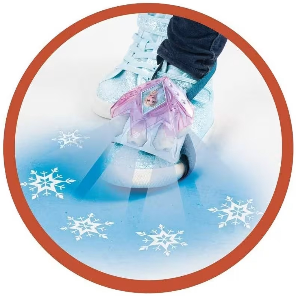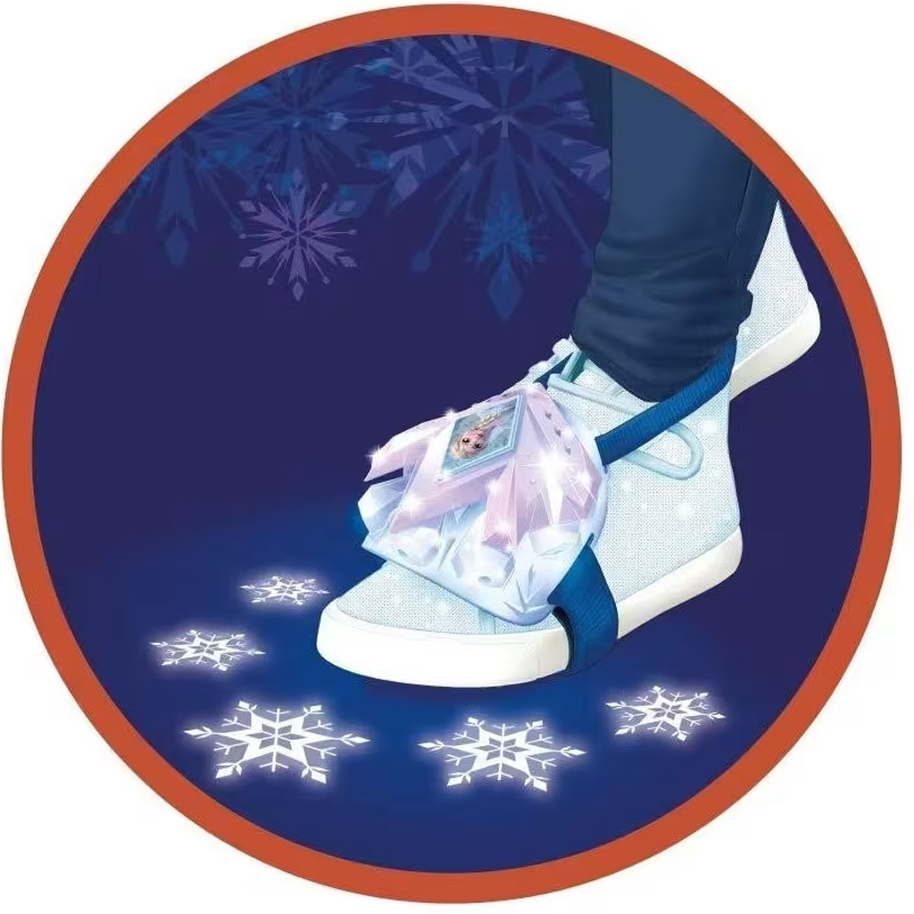 Opaska łatwo mocuje się do buta lub kostki, dzięki czemu dzieci mogą się w niej swobodnie poruszać. Gdy stawiają kroki, wbudowany projektor ożywa i wyświetla błyszczące lodowe kwiaty, jakby czary Elsy towarzyszyły im przy każdym kroku.