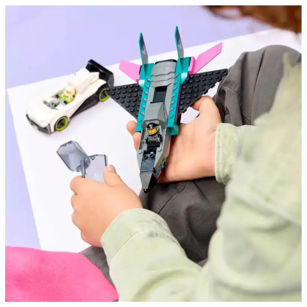 • ZAWARTOŚĆ PUDEŁKA – Zestaw zawiera wszystko, czego dzieci potrzebują do zbudowania zabawkowego supersamochodu i odrzutowego samolotu, a także minifigurki pilota i kierowcy do ekscytujących wyścigów