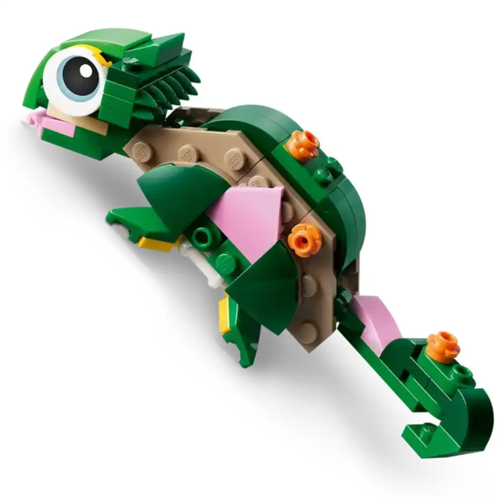LEGO® Creator 3 w 1 Żółw z kwiatem lilii wodnej (31377) to zestaw konstrukcyjny, dzięki któremu dzieci w wieku od 7 lat mogą odgrywać kreatywne historie ze zwierzętami. Ten uroczy, zwierzęcy zestaw oferuje dziewczynkom i chłopcom 3 różne możliwości budowania. Dzieci mogą zbudować żółwia z ruchomą głową i otwieraną buzią, do którego dołączony jest piękny, różowy kwiat lilii wodnej. Następnie mogą przebudować go w kameleona z ruchomą głową i ogonem lub w żabkę z otwieraną buzią. Po zabawie każdy model może być dumnie wyeksponowany jako wesoła dekoracja pokoju. Ten zestaw LEGO Creator 3 w 1 pobudza wyobraźnię dzieci, dlatego jest doskonałym i wartościowym prezentem dla wszystkich dziewczynek i chłopców, którzy lubią opowiadanie historii i dzikie zwierzęta. Dzięki aplikacji LEGO Builder dzieci mogą rozpocząć łatwą i intuicyjną przygodę z budowaniem. Instrukcje budowania 3D pozwalają powiększać i obracać modele, śledzić postępy i zapisywać zestawy w jednym miejscu. Ważne: nie można zbudować wszystkich modeli jednocześnie! Zestaw zawiera 124 elementy.
