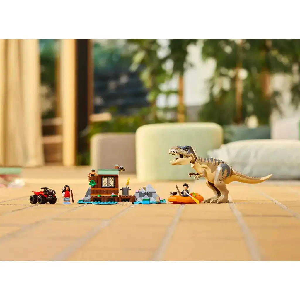 • Funkcje pobudzające wyobraźnię – Zestaw posiada wyrzutnię łodzi, która uruchamia zabawkowy statek, a figurka T-Rexa może niszczyć domek podczas zabawy (możesz go potem zbudować od nowa)