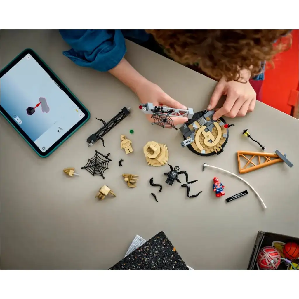 • 3 MINIFIGURKI LEGO® ǀ MARVEL – Zestaw zawiera 3 minifigurki walczące na placu budowy: Spider-Mana, Venoma z mackami oraz Sandmana z bazą z klocków i ogromnym ramieniem