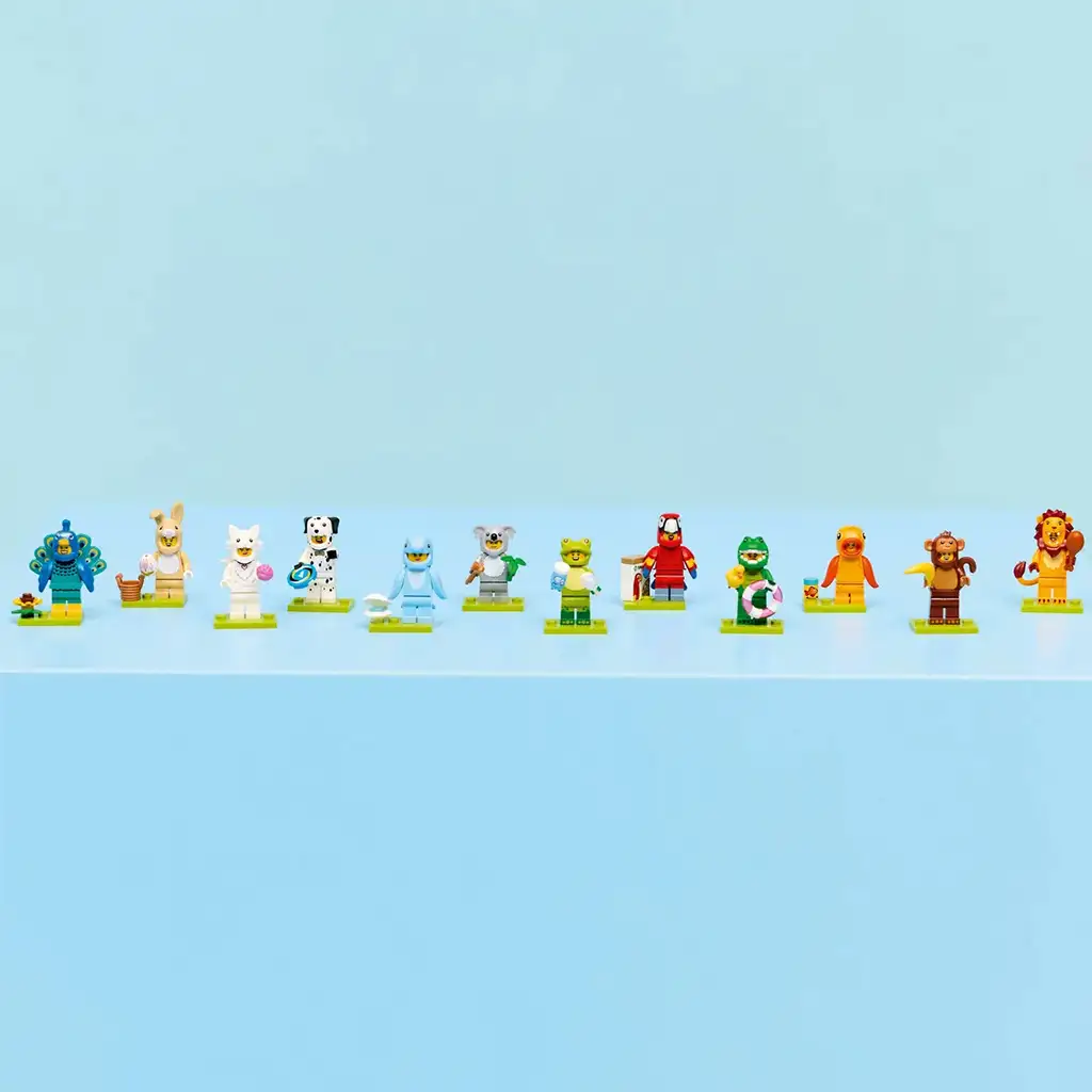 Dziewczynki i chłopcy w wieku od 5 lat mogą odgrywać zabawne historie z jedną z 12 kolekcjonerskich figurek z serii LEGO® Minifigurki, Zwierzęta, seria 28 (71051), dostępnych w opakowaniach-niespodziankach. W każdym opakowaniu znajduje się 1 niespodziankowa minifigurka LEGO, a w sumie można zebrać 12 figurek, wśród których są: papuga, lew, żaba, krokodyl, dalmatyńczyk, złota rybka, uroczy króliczek, paw, puszysty kot, koala, delfin i małpka w stroju zwierzaka. Każda z 12 figurek znajduje się w zamkniętym pudełku niespodziance i każda ma przynajmniej jeden dodatek. Te szczegółowo wykonane, urocze zwierzęce figurki mogą powiększyć istniejącą kolekcję, być dumnie prezentowane lub wykorzystywane do wymyślania zabawnych historii. Ten mały prezent to świetna niespodzianka dla dzieci kochających zwierzęta i przyrodę, inspirująca je do opowiadania historii i zapewniająca wiele godzin zabawy samodzielnej lub z przyjaciółmi.