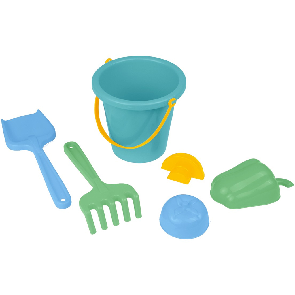 W skład zestawu wchodzi praktyczne wiaderko, w którym można łatwo przewozić piasek lub wodę, oraz różne narzędzia do formowania i budowania, takie jak łopatka, grabki i foremki do piasku. Radosne, żywe kolory oraz zaokrąglony, bezpieczny kształt zostały zaprojektowane specjalnie z myślą o młodszych dzieciach, dzięki czemu są wygodne i bezpieczne w użyciu.
