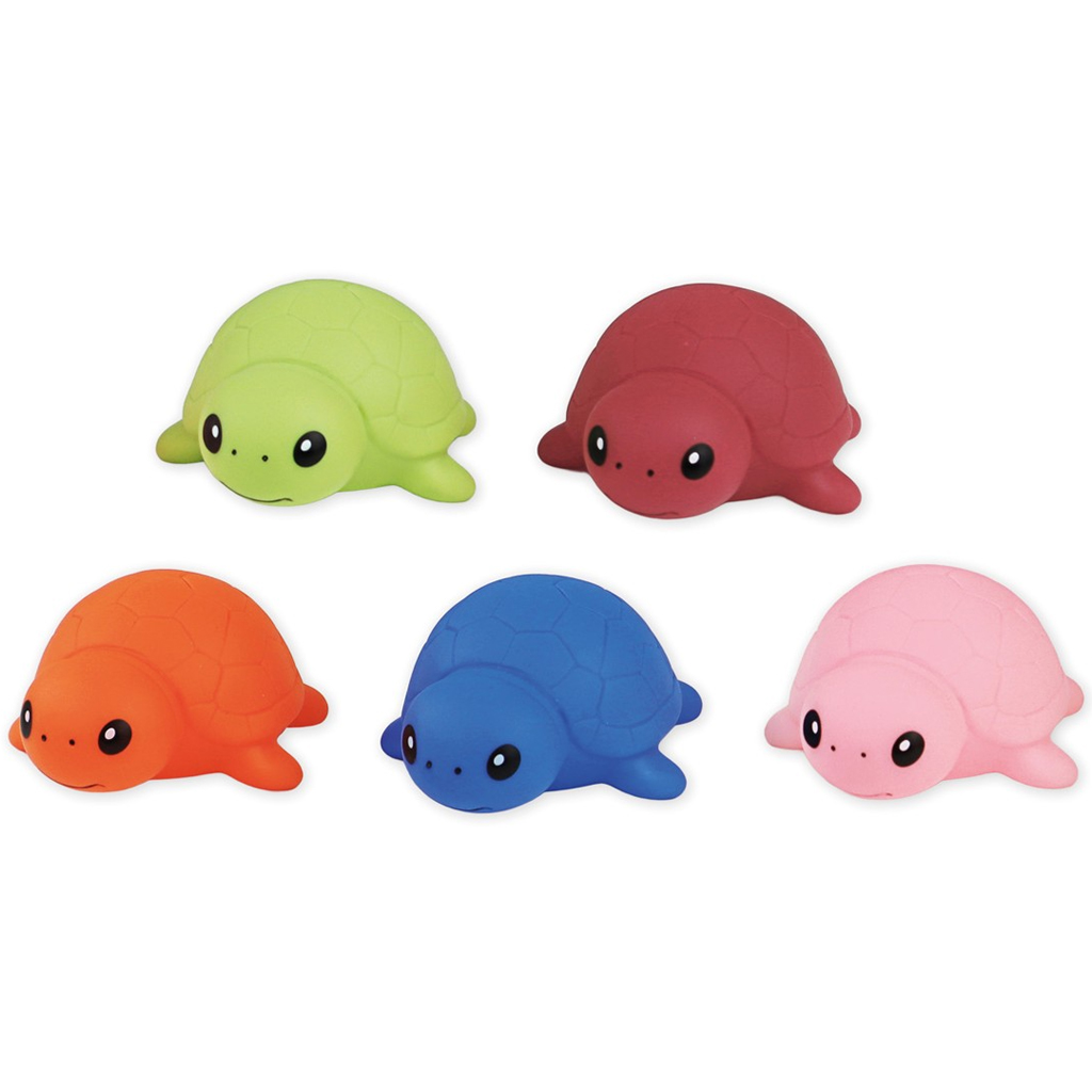 Żółwie występują w żywych kolorach, ich sympatyczne pyszczki i zaokrąglone kształty natychmiast przyciągają uwagę dzieci. Łatwo unoszą się na powierzchni wody, dzięki czemu można z nimi urządzać wyścigi, co dodatkowo uatrakcyjnia zabawę. Miękka, łatwa do chwytania konstrukcja ułatwia trzymanie małym rączkom, jednocześnie rozwijając małą motorykę, koordynację wzrokowo-ruchową oraz wyobraźnię.