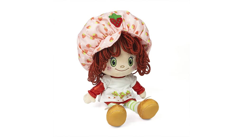 To 35-centymetrowa, miękka pluszowa lalka Strawberry Shortcake z haftowaną twarzą, włosami z plecionej włóczki, ubrana w sukienkę wykonaną z błyszczącego i lśniącego materiału, z jedwabistym kapeluszem oraz złotymi bucikami ozdobionymi serduszkami. Przytulanka z Gry dla dziewczyn wydziela słodki zapach truskawek, co sprawia, że zabawa staje się jeszcze bardziej wyjątkowym przeżyciem dla dzieci. Szczegółowe wykonanie oraz wysokiej jakości materiały gwarantują, że lalka Strawberry Shortcake pozostanie ulubioną towarzyszką zabaw na długi czas.